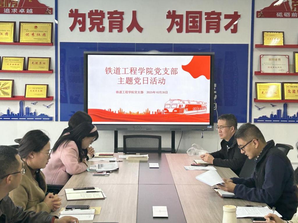 10月28日,铁道工程学院党支部在行知楼南207党建活动室开展“巴山铁路精神:新时代铁道人的精神富矿”主题党日活动,引导师生从红色铁路文化中汲取奋进力量,深化铁路精神的学习与领悟。党支部书记满春燕主持活动。