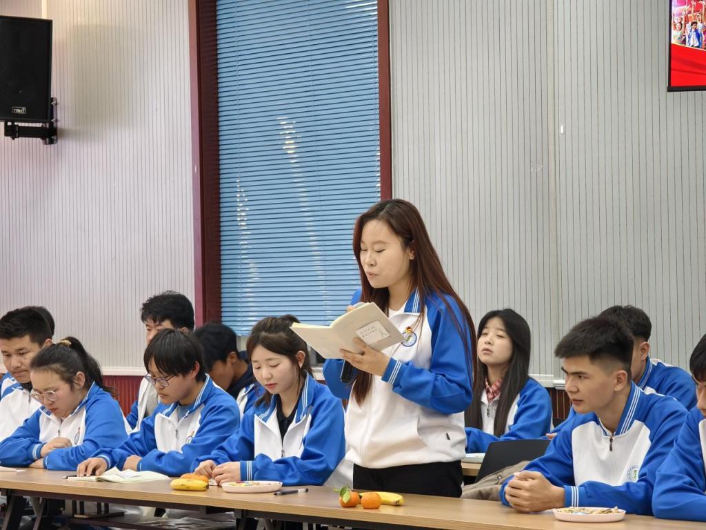 随后,24建筑工程2班的少数民族学生代表麦地娜木・努尔买买提发言。她结合自身在学校的学习与生活经历,分享了在学院关怀下的成长感悟,言语间充满了对学校和老师的感恩之情,也展现出少数民族学子积极向上、努力奋进的精神风貌,让在场人员深切感受到铁道工程学院为学生搭建成长平台的用心,以及学生们在校园里的幸福感。