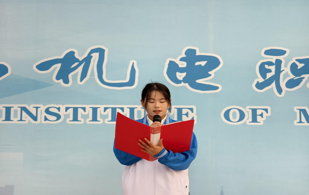 上午7时50分,仪式在庄严的氛围中正式开始。第一项为出旗环节。承担本次任务的擎旗手由24建工管理专业王荣同学担任,护旗手由25铁道工程5班连佳欣同学、25电气技术2班张哲楠同学担任,指挥手则由24机电技术9班杨立同学与25无人机技术2班王杨怡同学共同担当。在激昂的乐曲声中,旗手们步伐铿锵,护卫着国旗行进至国旗台前。
